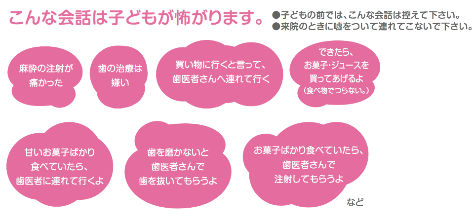 私たちとお子様の信頼関係を築くことが難しくなってしまいます。 お子様の治療を出来るだけ短時間にするためにも、